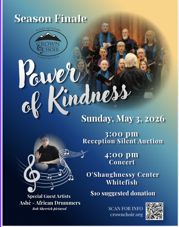 The Crown of the Continent Choir is a joyful and inclusive nonprofit community choir in the Flathead Valley, bringing people together through music that uplifts and connects. The choir serves the community through free concerts and benefit performances to support local charities and nonprofit organizations across Northwest Montana.